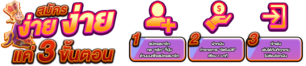 ตอบ : - กรอกข้อมูลส่วนตัวในแบบฟอร์ม - ยืนยันเบอร์โทรศัพท์/อีเมล - ฝากเงินขั้นต่ำตามที่กำหนด - รับโบนัสต้อนรับสมาชิกใหม่ - เริ่มเดิมพันได้ทันที